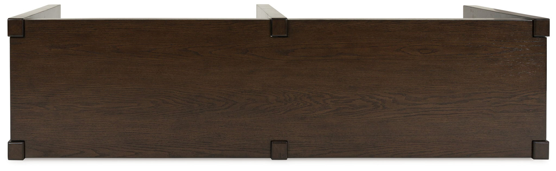 - Dark brown wood-tone finish
