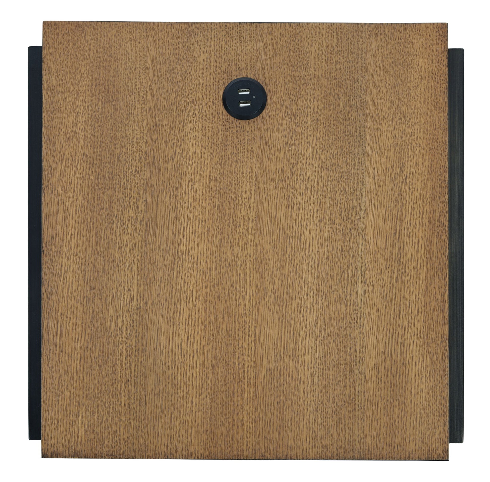 Beautiful to behold, this urban contemporary end table is loaded with high style and convenience. The wood sports a light, natural-looking finish that provides a dramatic contrast to the black metal frame. Its open cubby is perfect for stowing away books and magazines. A cleverly placed AC/USB charging port on the top lets you power up without moving a muscle.