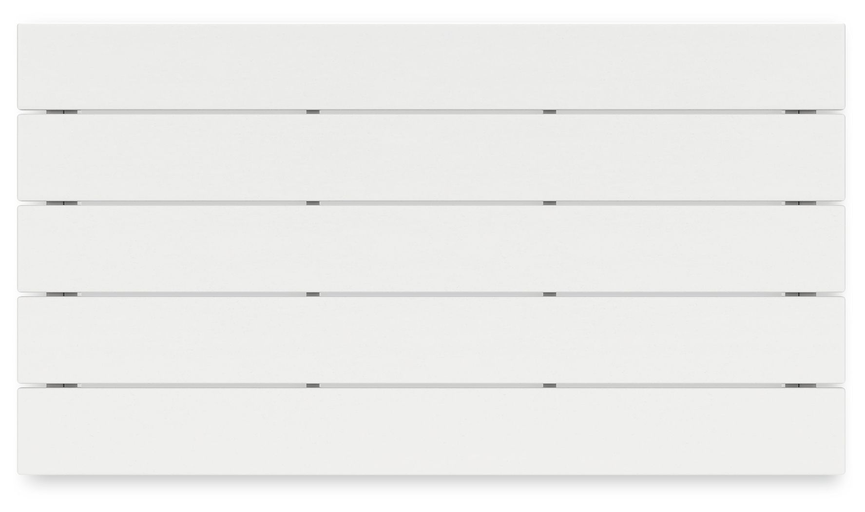 Drift into outdoor entertainment bliss with this coffee table. Dressed in a bright white for a fresh feel, it weathers sunny summer days and cozy winter nights with durable MEGA TUFF™ HDPE material. When it comes to form and function, the table's rain-shedding slatted design simply goes with the flow. Use it to hold outdoor decor, drinks or snacks.