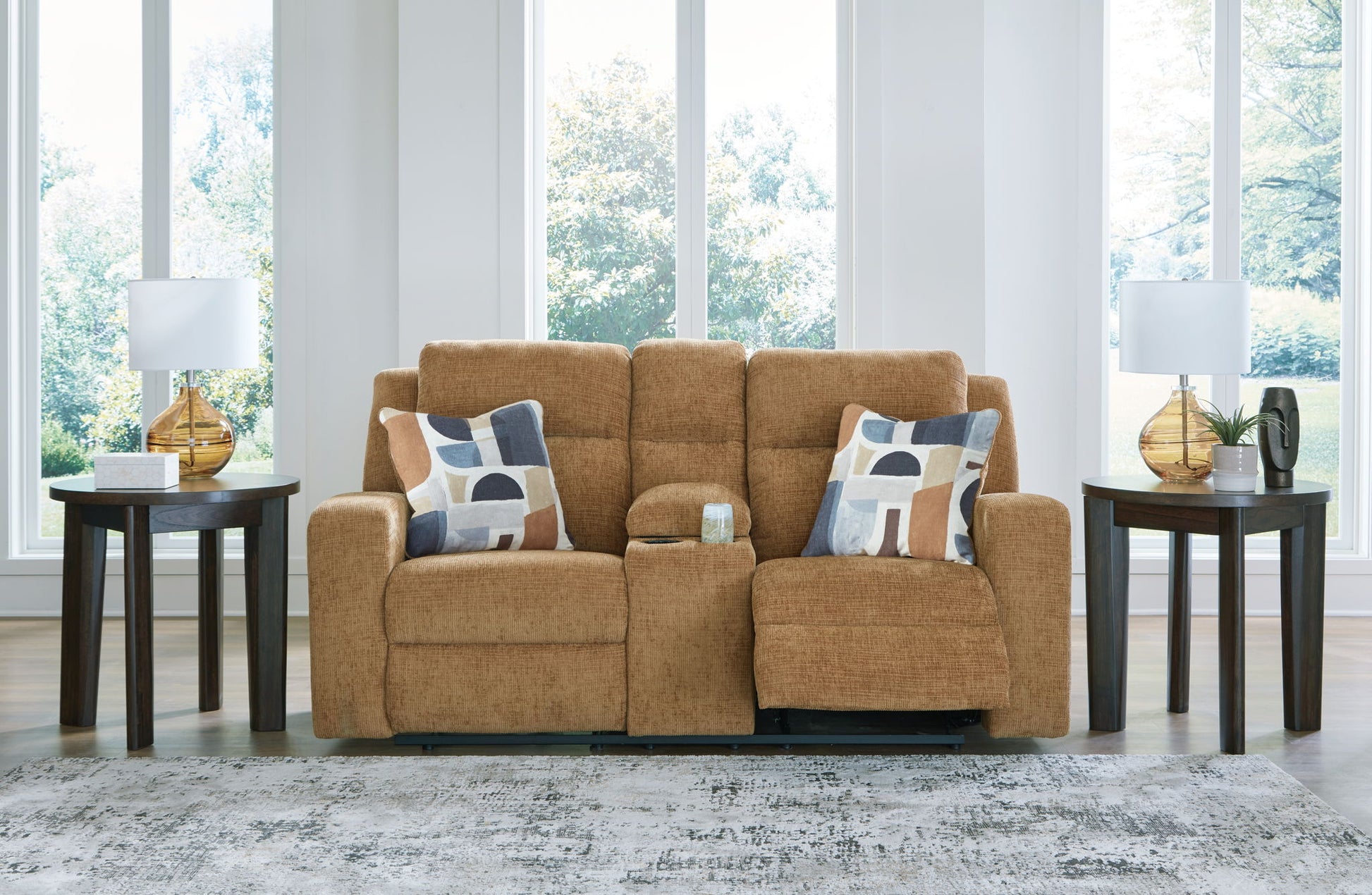 Kanlow - Dbl Reclining Loveseat With Console - Honey